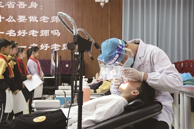 3月9日至10日,东阳市中医院口腔科医务人员走进吴宁第四小学,为孩子们开展窝沟封闭诊疗,并普及护牙知识。