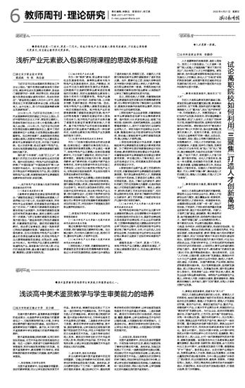 作为一种“跨界”教育,职业教育与经济社会发展紧密相连。高等职业教育与地方特色产业发展息息相关,因此,产教融合、校企合作已成为高职院校发展的必然趋势。这种趋势不仅是新时期职业教育适应性增强的内在需求,同时也是增强职业教育核心竞争力和吸引力的重要体现。特色产业集群集聚度高、成长性好、创新能力强、公共服务完善、发展环境优良、带动能力强。因此,将地方特色产业元素融入课程思政建设是一种双向赋能的体现。地方特色产业的资源背景保障了课程思政建设的发展;地方产业的特色锻造了课程思政建设的核心竞争力和生命力;地方特色产业的技术优势丰富了课程思政建设的高素质高技能人才培养。基于地方特色产业的包装印刷课程思政是新时代职业教育产教融合的一种创新形式,也是职业教育为地方特色产业发展赋能的强有力抓手。